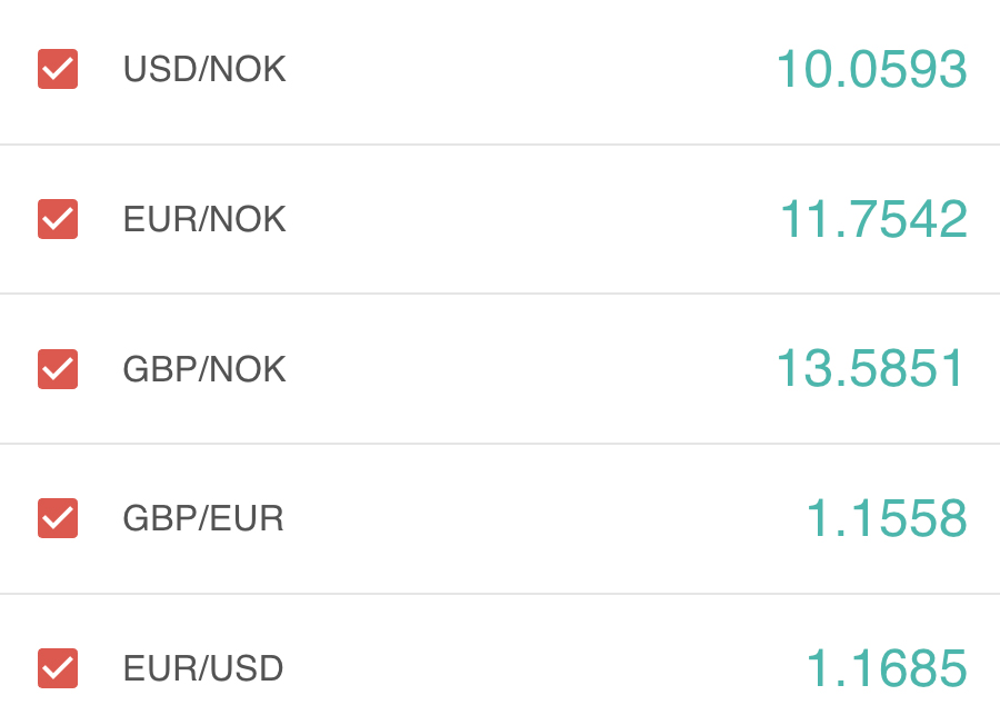 | LFEX Prices | FX Rates | LFEX Indicative Exporter Prices (4 Week) | EUR / NOK FX Rate (4 Week) |
