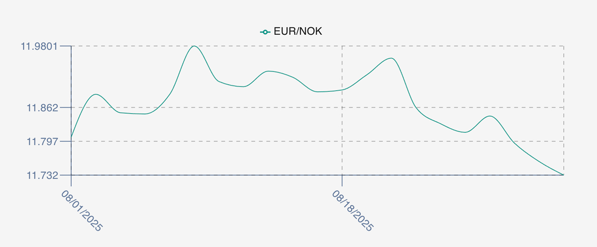 The LFEX Norwegian Exporters Index for Week 35 2025 ended the week UP +5.64 NOK / +9.49% to stand at 65.06 NOK (in EUR terms 5.53 / +0.52 / +10.42%) FCA Oslo Week ending Thursday vs previous Thursday.