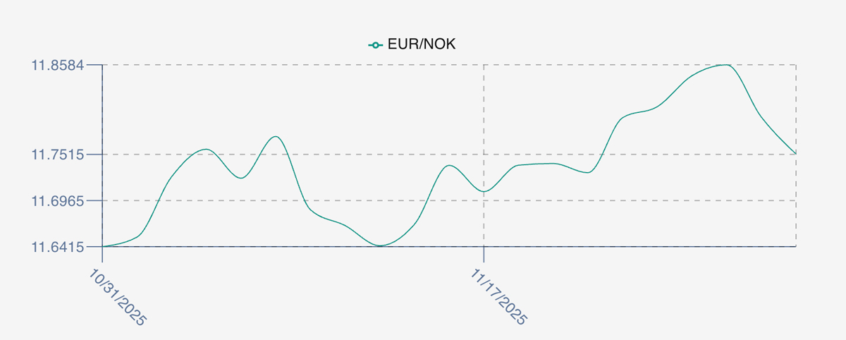 The EUR NOK FX rate is this afternoon around the 11.75 level off 0.05 since yesterday. This would give an indicative Euro index price around 7.53 EURO on offered levels later Friday – an increase of 0.73 Euro versus this time last week.