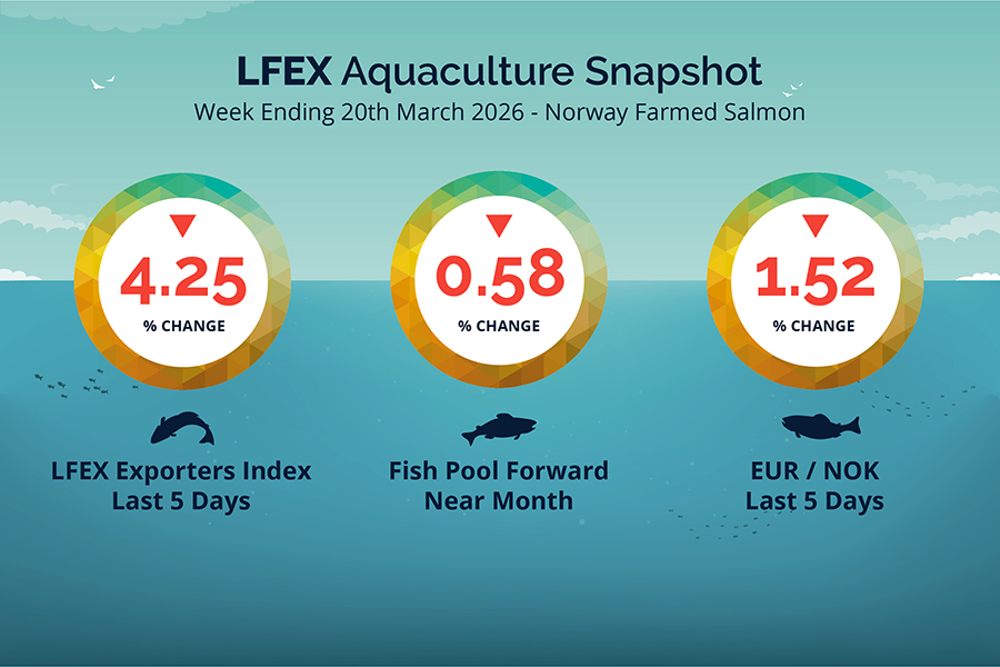 The LFEX Norwegian Exporters Index for Week 12 2026 ended the week DOWN -4.20 NOK / -4.25% to stand at 94.66 NOK (in EUR terms 8.61 / -0.25 / -2.77%) FCA Oslo Week ending Thursday to Thursday (yesterday).