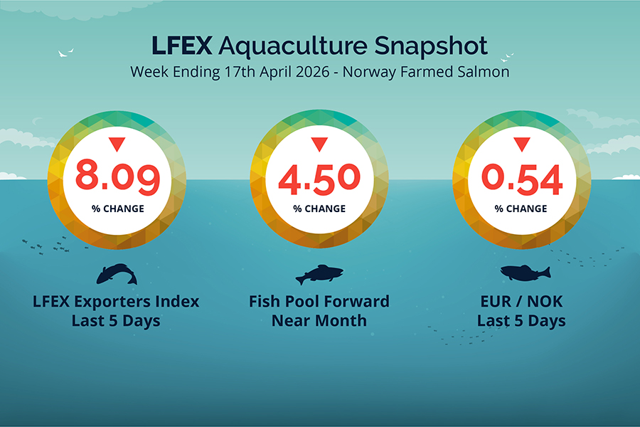 The LFEX Norwegian Exporters Index for Week 14 2026 ended the week DOWN -1.88 NOK / -2.09% to stand at 87.98 NOK (in EUR terms 7.85 / -0.24 / -2.97%) FCA Oslo Week ending Thursday to WEDNESDAY (yesterday).