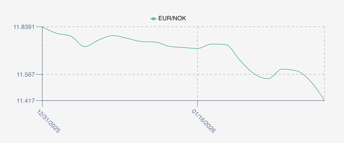 The NOK rate ended DOWN at 11.41 (-0.16 / -1.38%) to the Euro over the same period. The Fish Pool Euronext future February was reported DOWN at 7.25 EUR (-3.33% / -0.25) for the same period for comparison with March showing 8.35.