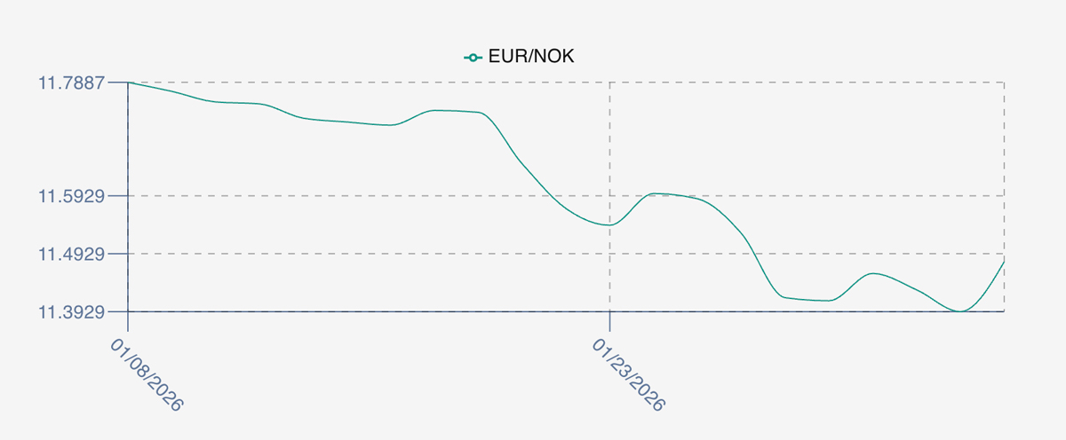 The LFEX Norwegian Exporters Index for Week 6 2026 ended the week UP +14.63 NOK / +17.43% to stand at 98.57 NOK (in EUR terms 8.59 / +1.23 / +16.71%) FCA Oslo Week ending Thursday to Thursday (yesterday).